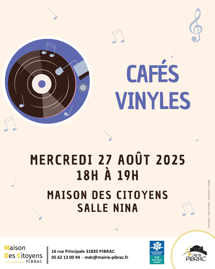 La Maison des Citoyens vous propose l’atelier Café Vinyles le mercredi 27 août 2025 de 18h à 19h à la salle Nina.