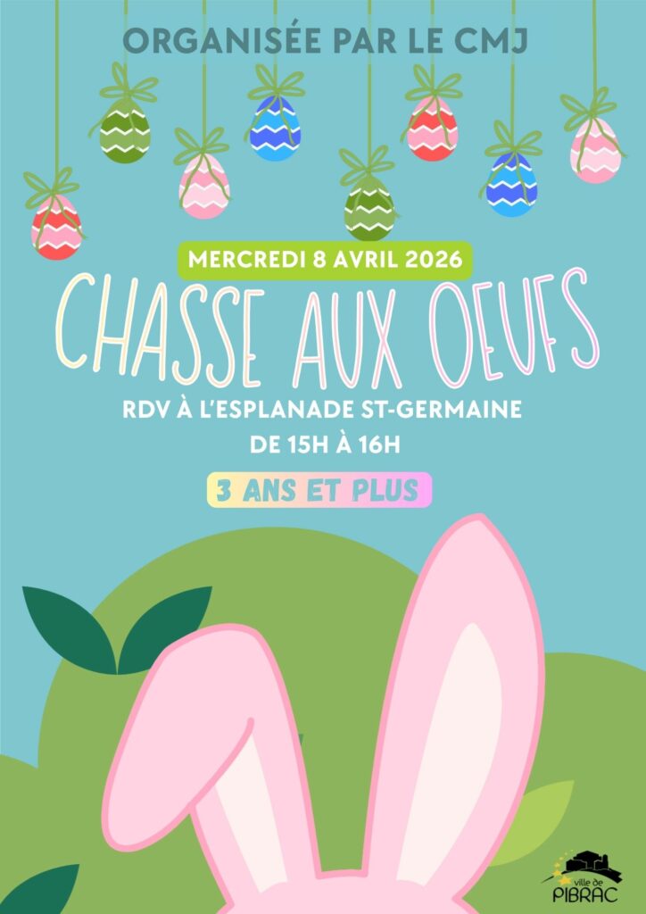 Le CMJ de Pibrac organise une chasse aux œufs le mercredi 8 avril 2026 de 15h à 16h sur l’Esplanade Sainte-Germaine.