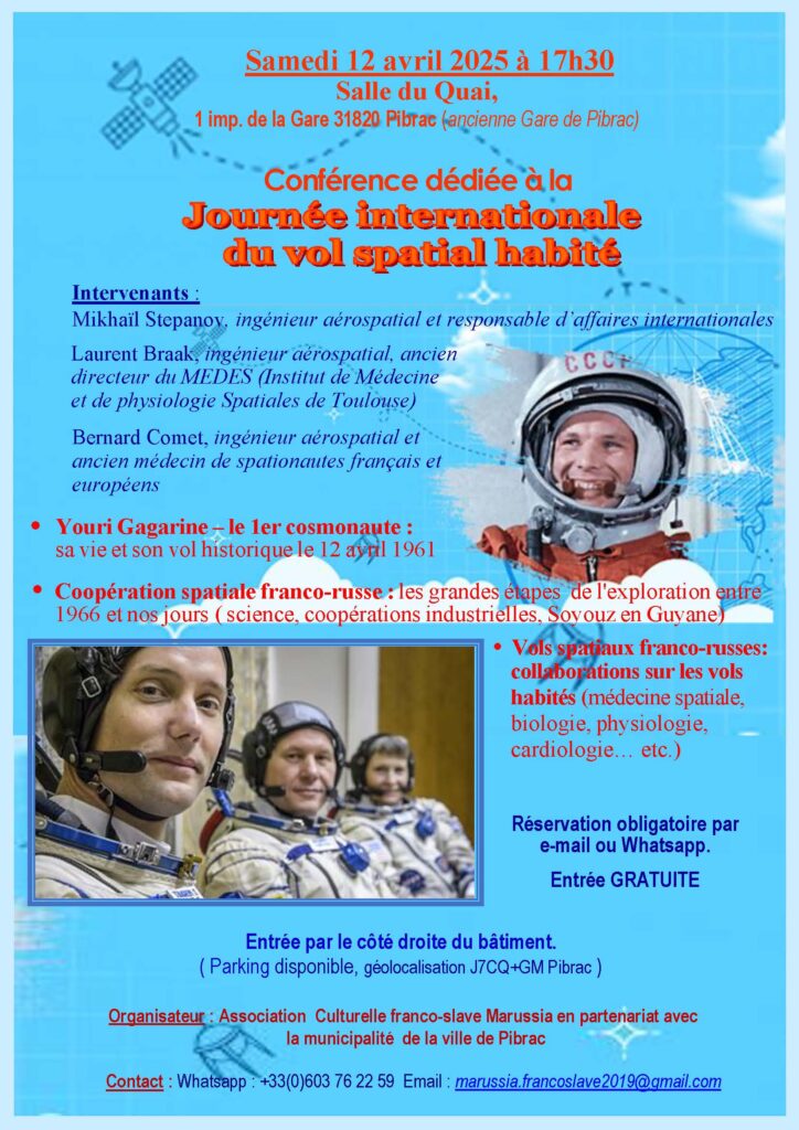 L’association Marussia organise une conférence dédiée à la journée internationale du vol spatial habité le samedi 12 avril 2025 à 17h30 à la salle du Quai.