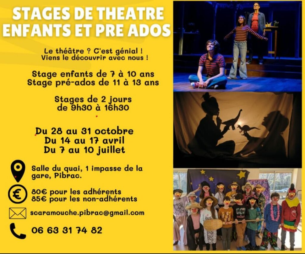 L’association Scaramouche propose un stage de théâtre pour enfants et pré-ados durant ces vacances à la Salle du Quai (impasse de la Gare).