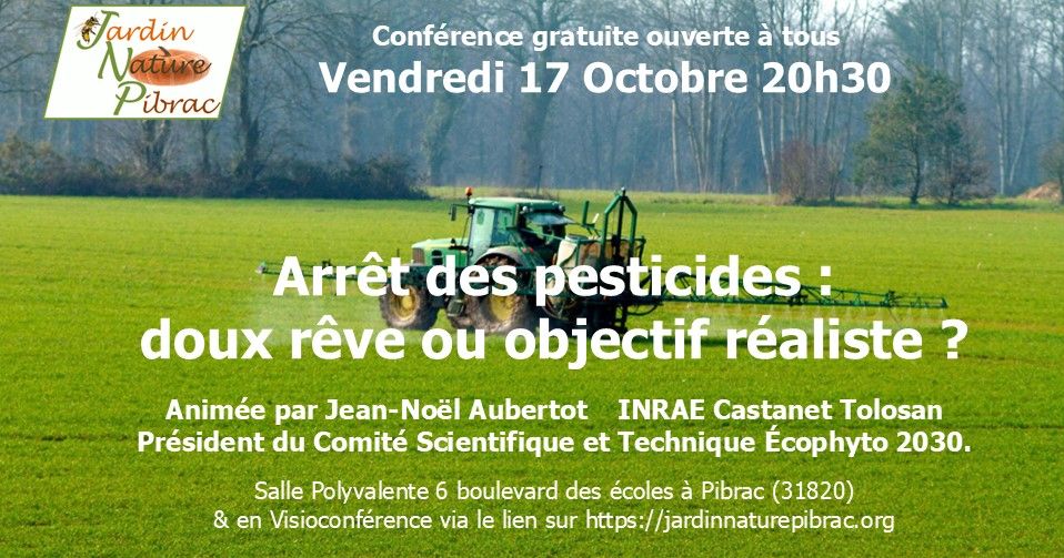 Jardin Nature Pibrac organise une conférence sur l'arrêt des pesticides le vendredi 17 octobre 2025 à 20h30 à la salle polyvalente et en visio.