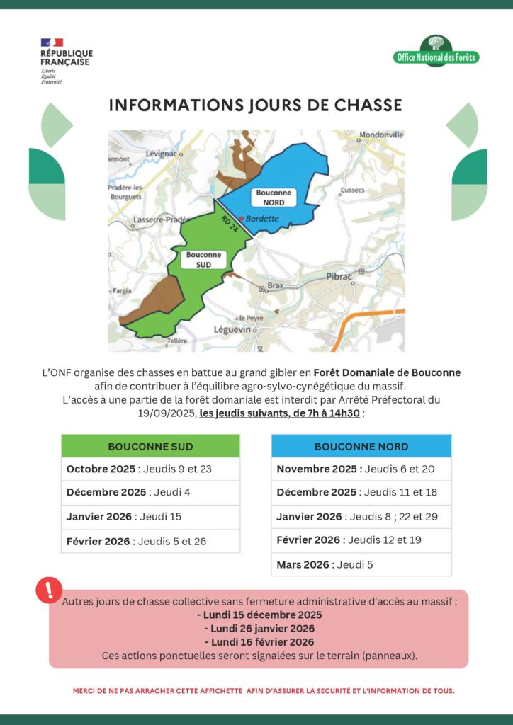 Les dates des battues sur la commune de Pibrac sont les suivantes :