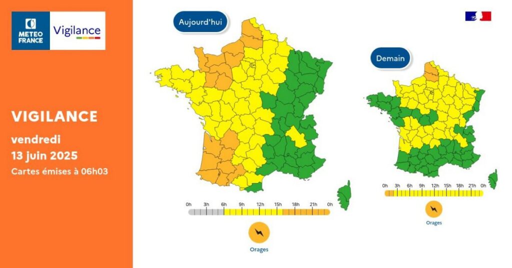 Le département de la Haute-Garonne est placé en vigilance orange pour orages à partir de ce vendredi 13 juin 2025 à 18h.