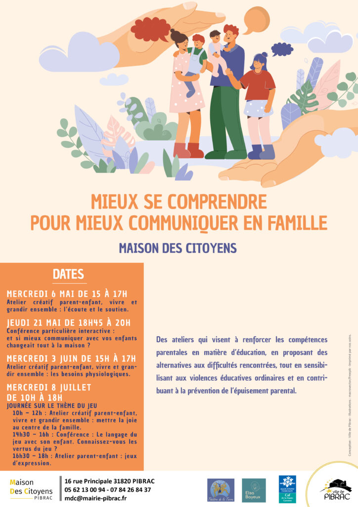 Ces ateliers se dérouleront à la Maison des Citoyens de mai à juillet 2026 en partenariat avec Elsa Bayeux, conférencière, thérapeute et formatrice en parentalité, Pierre Moryousef, comédien socio-éducatif et formateur en relations humaines mais aussi délégué départemental pour l’association « les maltraitances moi j’en parle » et Karine Gentes sophrologue et formée à l’art thérapie, est présente sur les ateliers « Mon enfants est différent ».